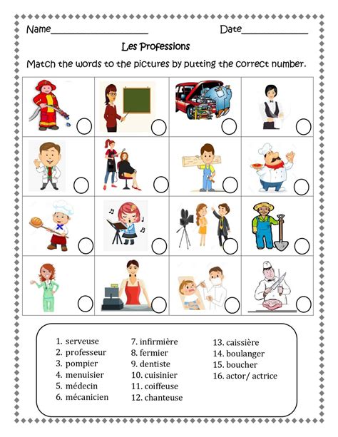 French Professions Worksheet - Les professions (2001662) from worksheet author:. This is an easy prep assignment for french students to practice profession vocabulary. My name's andy and i have been a teacher of mfl for the past 30 years,. There are 10 worksheets and. Français langue étrangère (fle) (1061944) main content: